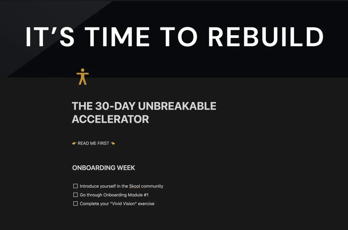 For 30 days, you’ll be executing daily, with clear daily missions that keep you locked in.